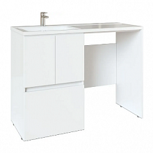 Тумба Марбл 100 функционально состоит из двух вместительных ящиков, оснащенных системой push to open, обеспечивающей надежное, комфортное и бесшумное закрывание. Дополнительно предусмотрены 2 регулируемые планки для внутренней организации пространства. Верхний фасад изделия выполнен из МДФ с реечной фрезеровкой в белой матовой пленке с эффектом soft touch, а нижний фасад и корпус из ламинированной влагостойкой ДСП Слэйт. Верхний и нижний ящики позволяют содержать косметические средства в идеальном порядке. Тумба комплектуется различными по форме накладными раковинами: Santek Одри Soft, Santek Одри Round, Aquaton Лола, Roca Mila круглая и Roca Mila прямоугольная. Раковины продаются отдельно.