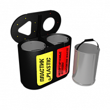 Урна для мусора имеет возможность крепления анкерными болтами к поверхности. Основной бак урны имеет специальный механизм опрокидывания, позволяющий легко очистить её от мусора.