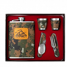 Фляжка для хранения и транспортировки жидкости, выполненная в военном стиле. При небольшом весе (315 г) и компактных габаритах фляжка вмещает 1,9 л жидкости. Форма – прямоугольная, с боковым горлышком. Поверхность фляжки, во избежание скольжения в руке, – шероховатая. Крышка имеет страховочное крепление к бутылке и ребристую поверхность для удобства открывания. Широкое горлышко гарантирует легкое наливание напитков. Крышка герметично закрывается, благодаря чему напитки не портятся и не приобретают специфических запахов.